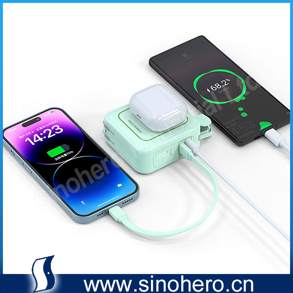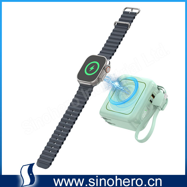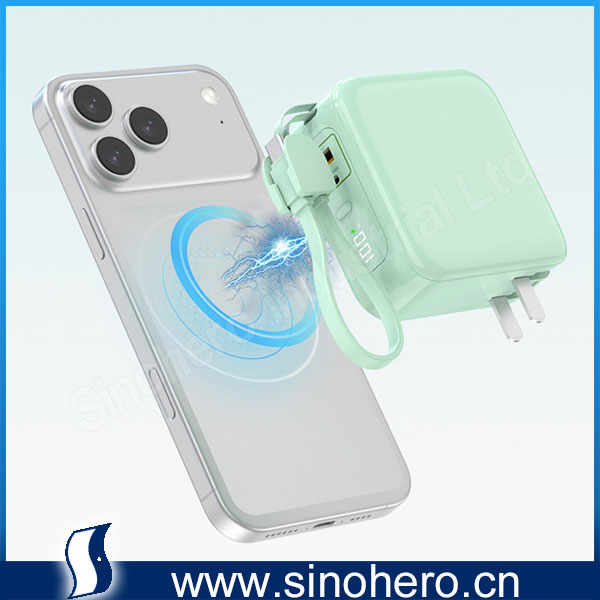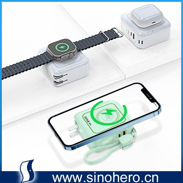 • 6 in 1 ETL/CE Certified 10000mAh 22.5W Portable Magsafe Wireless Wall Charger Power Station with C-C cable hanging rope